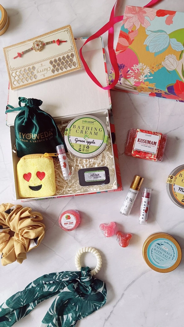 A beautiful hamper comes in a attractive floral printed cappa board box with magnetic lock. It contains